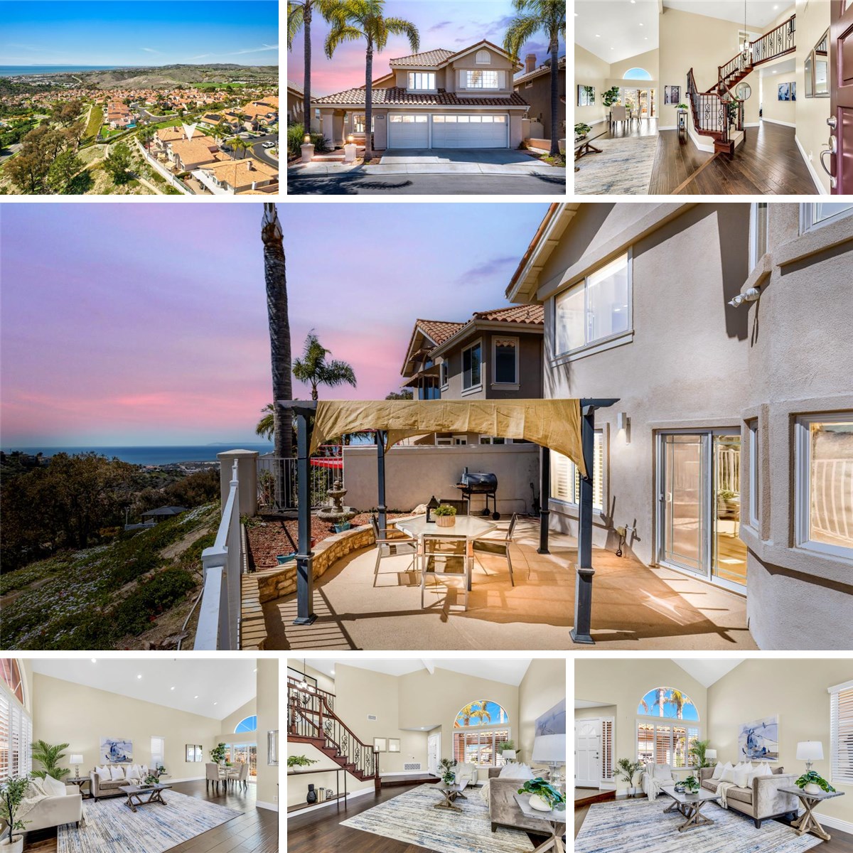 Nestled in a serene setting showcasing breathtaking ocean & canyon views, this expansive 5-bed/3-bath home spans 2,822 sq ft of meticulously designed living space. Soaring 2 story ceilings & and an abundance of windows greet you as you enter your new home, & the main level's dark finish hickory hardwood flooring exudes warmth & richness. The remodeled kitchen is beyond spacious & comes complete with slab stone countertops trimmed with custom stone tile backsplash & the updated stainless steel appliances, including a separate 60 bottle wine fridge, make this kitchen a culinary dream. Convenience meets luxury with a main-level bedroom & a remodeled bathroom featuring slab stone counters, custom stained cabinetry, & a frameless glass enclosed walk-in shower. Finishing off the main level is the laundry room & access to the 3 car garage. The craftsmanship continues with custom tile flooring on the stairs & throughout the upper level, complemented by 6 in. custom baseboards & mouldings, & a new custom wrought iron stair rail system. Step into your private primary suite featuring soaring vaulted ceilings & unmatched views of the canyon & ocean. The en-suite bathroom is a masterpiece of relaxation, complete with an oversized dual-sink vanity, slab stone countertops, a separate soaking tub, & separate shower with custom stone tile surround & frameless glass enclosure. Servicing the 3 spacious upstairs guest rooms, the hall bathroom echos the theme of refined luxury with custom stained cabinetry, slab stone counters, & an exquisite custom stone tile walk-in shower with frameless glass enclosure. Other notable upgrades include custom recessed lighting, window casings, & plantation shutters. Your new private backyard is an oasis of tranquility, opening up to captivating views of the canyon and ocean, including Catalina Island on a clear day, making it an ideal backdrop for relaxation or entertaining guests. Brisa Del Mar is an intimate community of just 87 homes, offering extraordinary ocean views from two corner HOA parks, as well as access to a private HOA pool & spa area. The location is ideal, with Lobo Elementary, Rancho San Clemente Park, & Life Time Fitness directly within the Rancho San Clemente area. You’re also just minutes away from world-class surfing & beaches, shops, schools, & the vibrant downtown scene. Experience the best of coastal living in this exceptional home ... your best life starts right here!